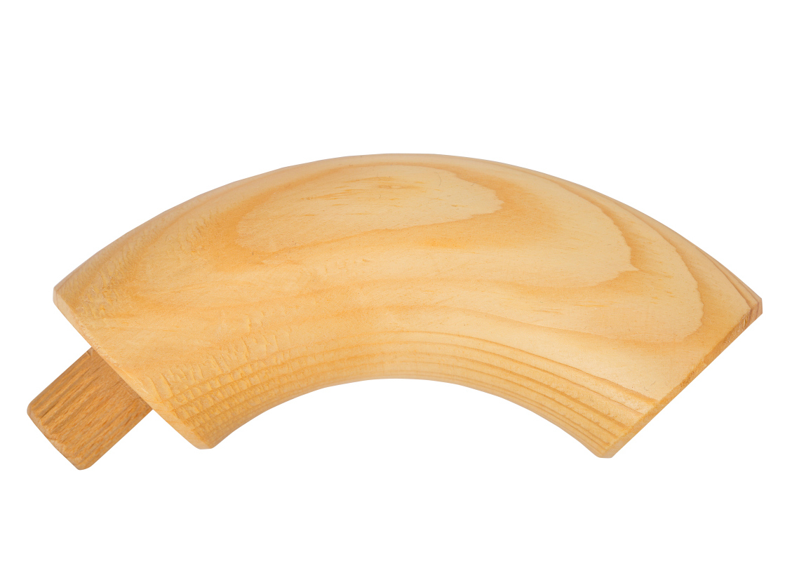 Essence de bois : Hêtre massif, feutré- Les deux extrémités sont percées (15 mm) cheville incluse- Les deux extrémités sont légèrement biseautéesSurface : rabotée et poncéeCoude non monté